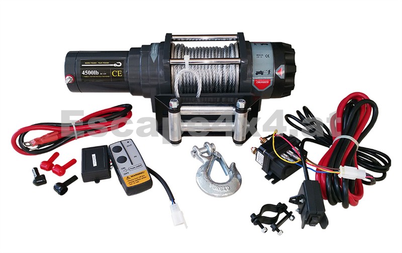 Der komplette Satz, die Winde mit Relais und Verkabelung, Montageplatte, Rollen, alle benötigten Befestigungsschrauben für einfachen und schnellen Anschluss. Bedienung mit Kabelfernbedienung und drahtloser Fernbedienung.