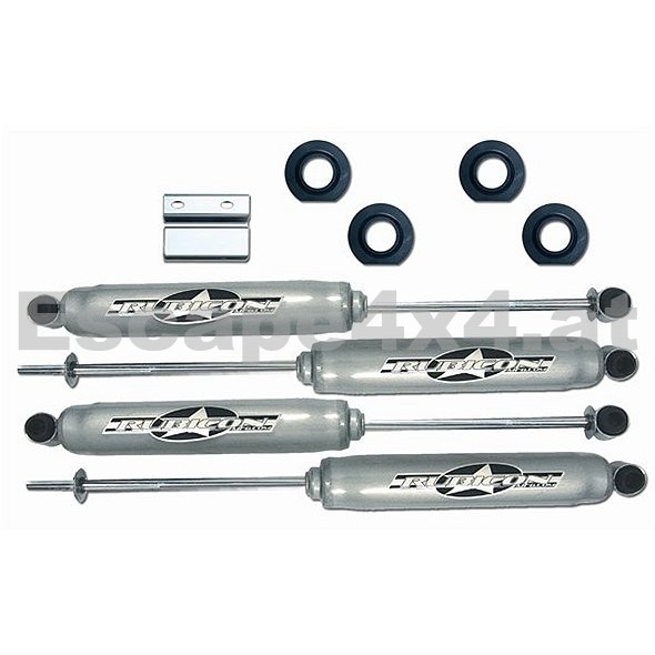 Fahrwerk Rubicon Express für Fahrzeuge Jeep Grand Cherokee ZJ, beinhaltet alles für Höherlegung des Fahrwerks um +5 cm. Der Satz beinhaltet die vorderen und hinteren Unterlegscheiben über die originalen Schraubenfedern und Stoßdämpfer Twin Tube.