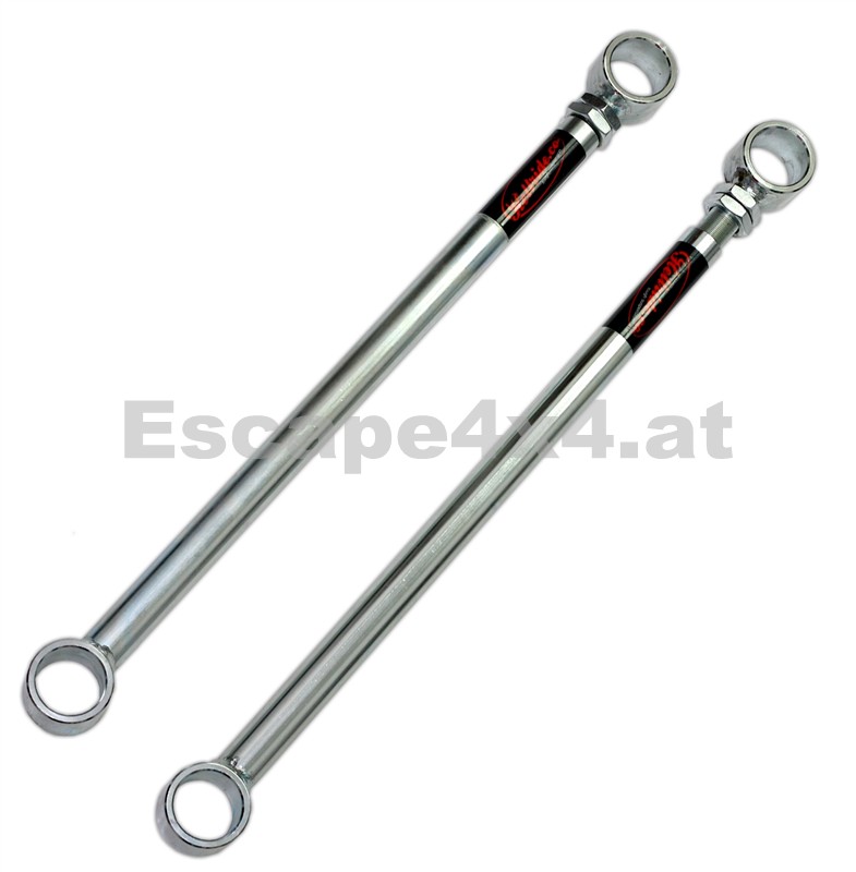 Die Längslenker sind aus dickwandigen nahtlosen Rohren hergestellt, also wesentlich stärker wie die Originalteile, sind widerstandsfähiger gegen biegen und brechen.Einstellbar über das Feingewinde, um die erforderliche Länge der Arme einstellen zu können.