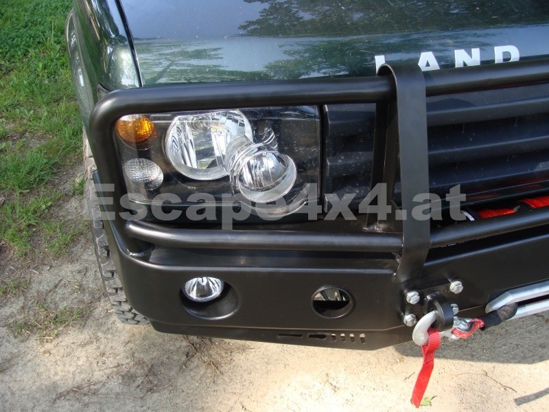Beschreibung: HD-Windenstoßstange für Land Rover Discovery II 1998-2005 - mit Rammschutz