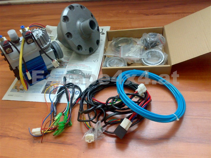 Der Satz beinhaltet alle erforderlichen Komponenten. Vergessen Sie nicht den Kompressor nachzubestellen. Bestandteil des Kompressors ist die für Anschluss der Sperre erforderliche elektrische Verkabelung und die Montageanleitung.