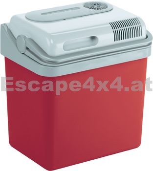 Kühlbox, verwendbar mit 12V und 24V Netzspannung. Technische Daten: Abmessungen (L x B x H) 390 x 280 x 390 mm, Volumen 24 Liter, Farbe rot, Gewicht 9 kg