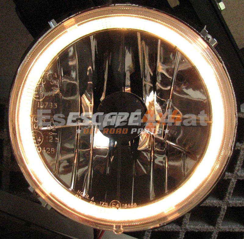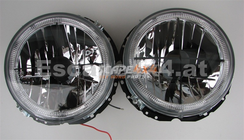 Vordere Lampen mit Kreuz in der Mitte, Angel Eyes. Geeignet für Nissan Patrol Y60, Toyota LJ70, Jeep Wrangler, Suzuki Samurai. Homologation E. Preis beinhaltet den kompletten Satz, also 2 Stück!