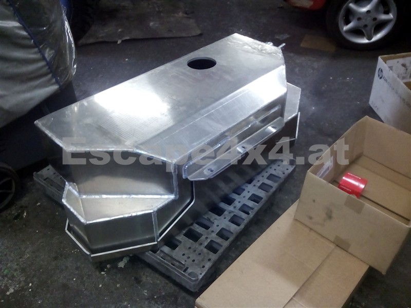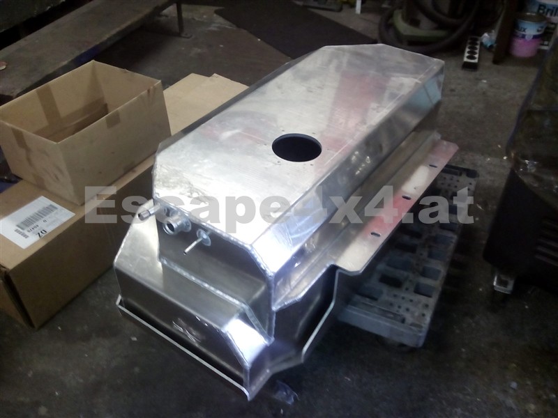 Der Tank ersetzt den Haupttank und passt in die originale Halterung am Rahmen, der Schwimmer und alle weiteren Anschlüsse werden vom alten Tank übernommen. Tankinhalt ist 150L. Der Tank ist aus 4mm Aluminium gefertigt.