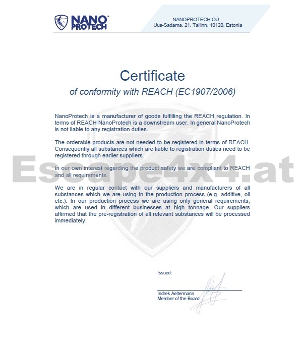 Zusammensetzung: hochgereinigtes Mineralöl, Antikorrosionszusätze, Antioxygenmittel, Paraffin- und Naphthen-Kohlenwasserstoffe, Formel NANOPROTECH, Kohlenwasserstoff-Polypropylen.