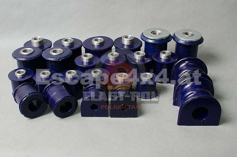PU-Fahrwerkbuchsen von Elast-Pol - Das Material Polyurethan (PU) ist 10 mal haltbarer als Gummi. Die Verwendung von Polyurethan-Komponenten ermöglicht es Ihnen, das Fahrzeug auch auf die härtesten Anforderungen vorzubereiten.