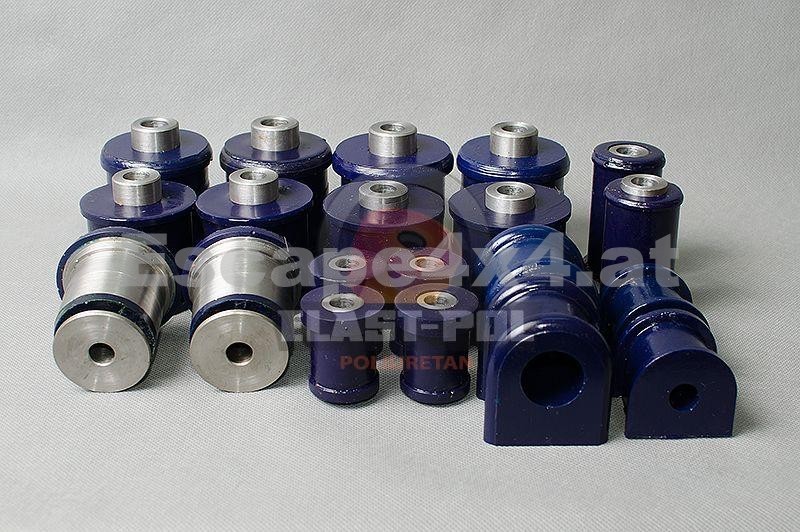 PU-Fahrwerkbuchsen von Elast-Pol - Das Material Polyurethan (PU) ist 10 mal haltbarer als Gummi. Die Verwendung von Polyurethan-Komponenten ermöglicht es Ihnen, das Fahrzeug auch auf die härtesten Anforderungen vorzubereiten.