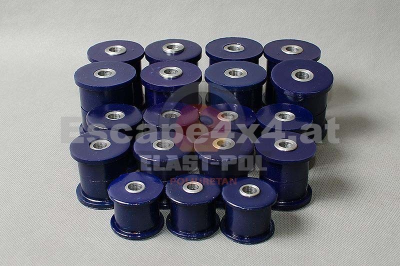 PU-Fahrwerkbuchsen von Elast-Pol - Das Material Polyurethan (PU) ist 10 mal haltbarer als Gummi. Die Verwendung von Polyurethan-Komponenten ermöglicht es Ihnen, das Fahrzeug auch auf die härtesten Anforderungen vorzubereiten.
