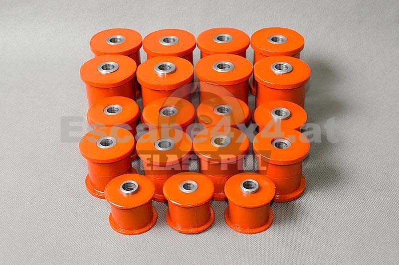 PU-Fahrwerkbuchsen von Elast-Pol - Das Material Polyurethan (PU) ist 10 mal haltbarer als Gummi. Die Verwendung von Polyurethan-Komponenten ermöglicht es Ihnen, das Fahrzeug auch auf die härtesten Anforderungen vorzubereiten.