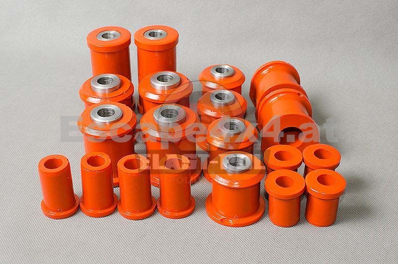 PU-Fahrwerkbuchsen von Elast-Pol - Das Material Polyurethan (PU) ist 10 mal haltbarer als Gummi. Die Verwendung von Polyurethan-Komponenten ermöglicht es Ihnen, das Fahrzeug auch auf die härtesten Anforderungen vorzubereiten.