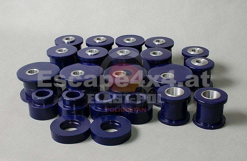 PU-Fahrwerkbuchsen von Elast-Pol - Das Material Polyurethan (PU) ist 10 mal haltbarer als Gummi. Die Verwendung von Polyurethan-Komponenten ermöglicht es Ihnen, das Fahrzeug auch auf die härtesten Anforderungen vorzubereiten.