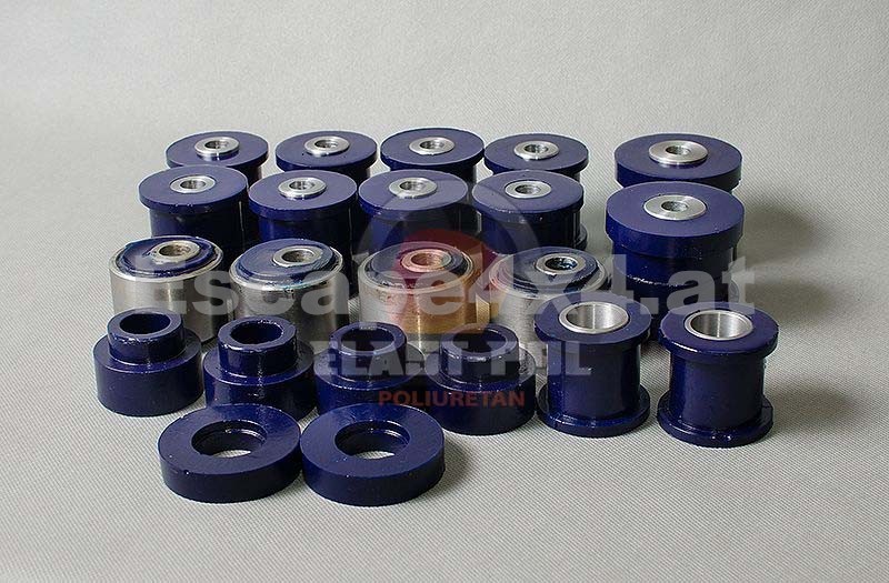 PU-Fahrwerkbuchsen von Elast-Pol - Das Material Polyurethan (PU) ist 10 mal haltbarer als Gummi. Die Verwendung von Polyurethan-Komponenten ermöglicht es Ihnen, das Fahrzeug auch auf die härtesten Anforderungen vorzubereiten.