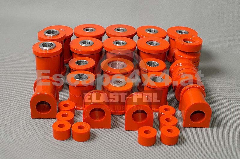 PU-Fahrwerkbuchsen von Elast-Pol - Das Material Polyurethan (PU) ist 10 mal haltbarer als Gummi. Die Verwendung von Polyurethan-Komponenten ermöglicht es Ihnen, das Fahrzeug auch auf die härtesten Anforderungen vorzubereiten.