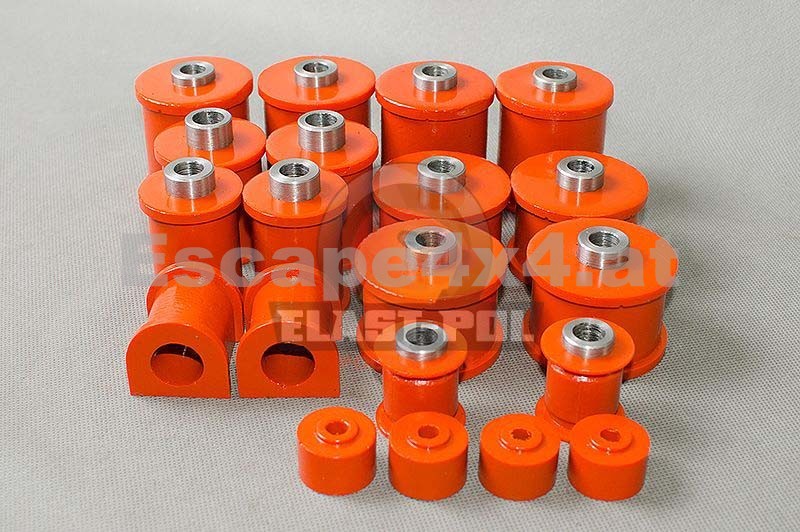 PU-Fahrwerkbuchsen von Elast-Pol - Das Material Polyurethan (PU) ist 10 mal haltbarer als Gummi. Die Verwendung von Polyurethan-Komponenten ermöglicht es Ihnen, das Fahrzeug auch auf die härtesten Anforderungen vorzubereiten.