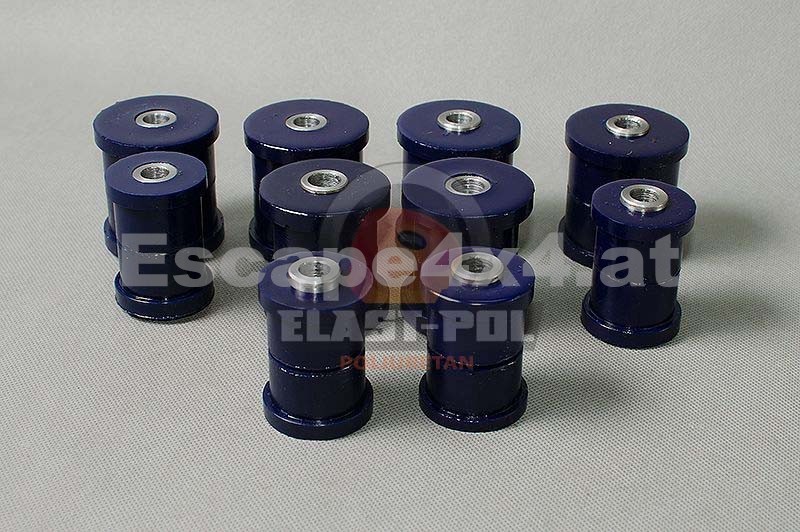 PU-Fahrwerkbuchsen von Elast-Pol - Das Material Polyurethan (PU) ist 10 mal haltbarer als Gummi. Die Verwendung von Polyurethan-Komponenten ermöglicht es Ihnen, das Fahrzeug auch auf die härtesten Anforderungen vorzubereiten.