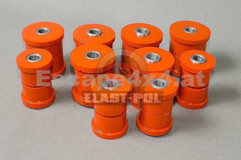 PU-Fahrwerkbuchsen von Elast-Pol - Das Material Polyurethan (PU) ist 10 mal haltbarer als Gummi. Die Verwendung von Polyurethan-Komponenten ermöglicht es Ihnen, das Fahrzeug auch auf die härtesten Anforderungen vorzubereiten.