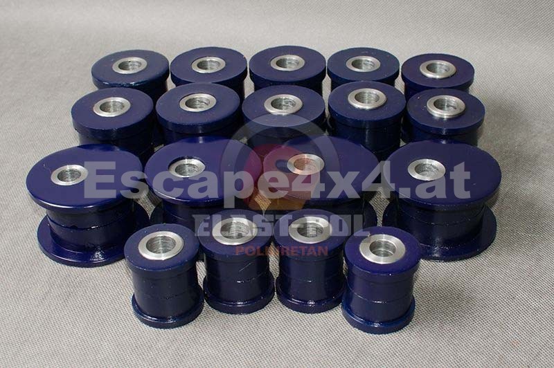 PU-Fahrwerkbuchsen von Elast-Pol - Das Material Polyurethan (PU) ist 10 mal haltbarer als Gummi. Die Verwendung von Polyurethan-Komponenten ermöglicht es Ihnen, das Fahrzeug auch auf die härtesten Anforderungen vorzubereiten.