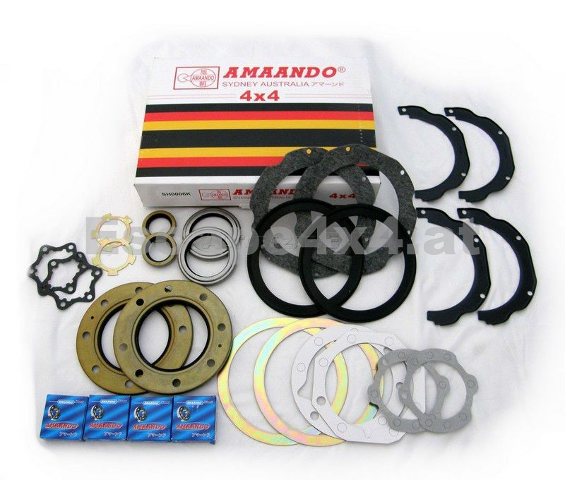 Der Reparatursatz AMAANDO Toyota Land Cruiser 80, Toyota Land Cruiser 105, ein kompletter Satz, der Ölleckage aus der Vorderachse löst. Lebensdauer der Achse und der Gleichlaufgelenke wird damit verlängert. Der professionelle australische Satz von Dichtungen, Guferos und Lagern.