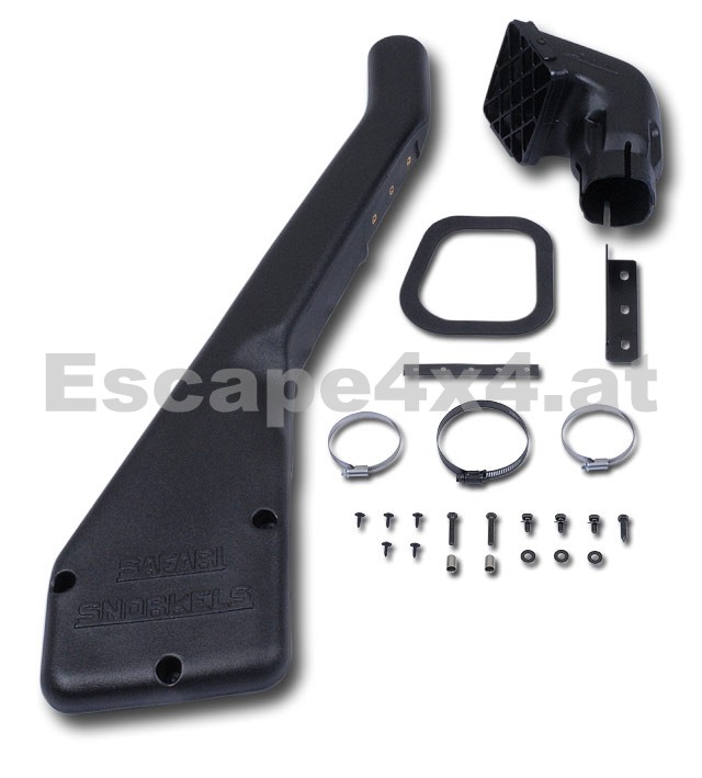 The Safari Snorkel system is supplied as a complete and comprehensive system that includes every nut, bolt and bracket required for installation - right from robust zero-corrosion stainless steel studs, self-locking nyloc nuts and large diameter anodized body washers through to the tough plastic A-pillar inserts. |