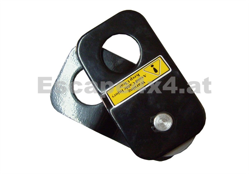 Kapazität max. 4000 kg, Durchmesser: 60 mm, Aufnahme fürs Seil bis zu 8 mm stark, Blocklänge: 170 mm, verschiebbare Seitenteile 3-4 mm stark, Rollenwalze, verzinkte Bleche beschichtet mit Schwarzlack. Gewicht: 2 kg.